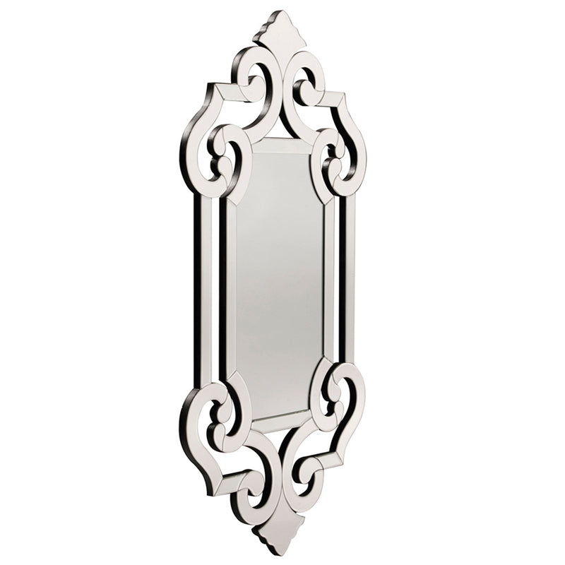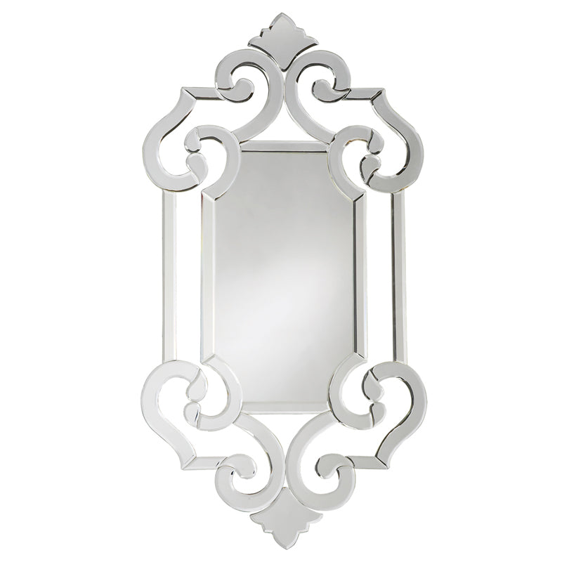 Our Clarice mirror features an elegantly ornate open-work frame. The frame itself is fashioned in the Venetian style of an ornate scrolling design which we accentuated by finishing it with mirrored glass. It is a perfect focal point for an entryway, bathroom, bedroom or any room in your home. D-rings are affixed to the back of the mirror so it is ready to hang right out of the box. Mirror