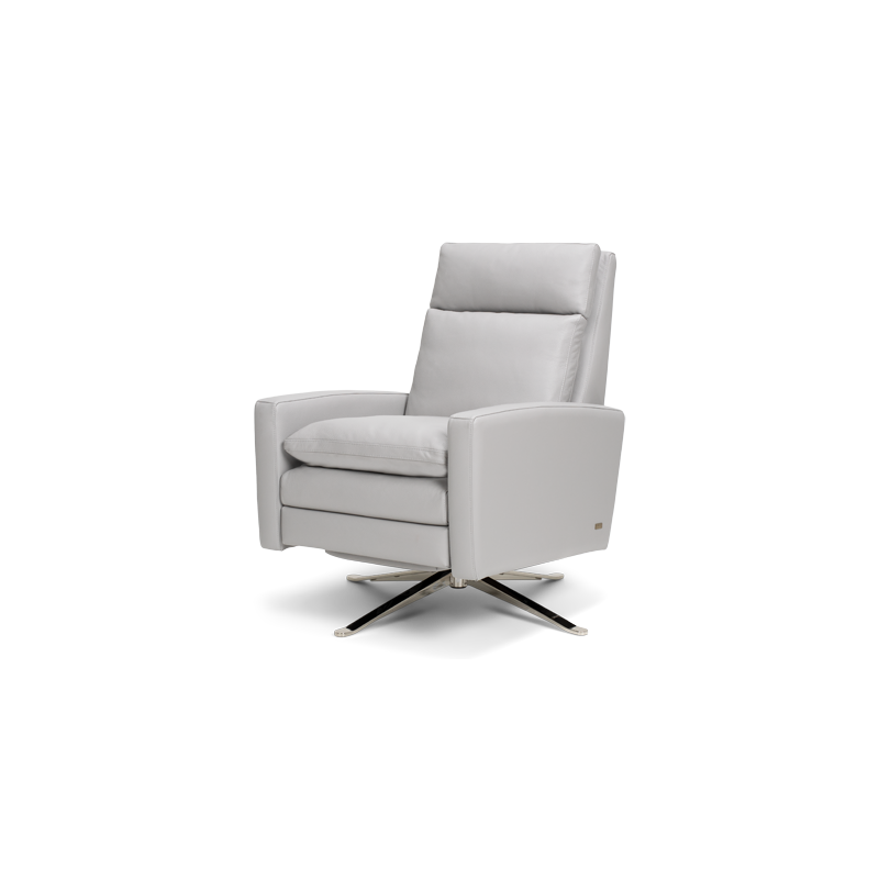 The down filled pillow tops add an unexpected softness to the headrest, seat, and back. The stunning swivel base is available in Antique Brass, Burnished Bronze, or Polished Nickel. The Simon is just as functional as it is beautiful, allowing you to recline in one simple push back motion.