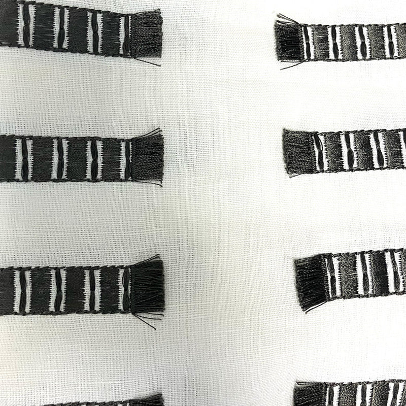 Fun fringes add texture to this punctuated stripe.