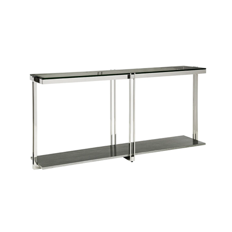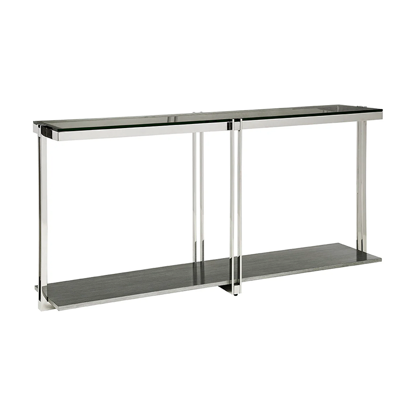 Metal: Available in Polished Stainless Steel or Satin BrassTempered Glass Top Shelf