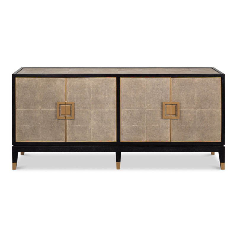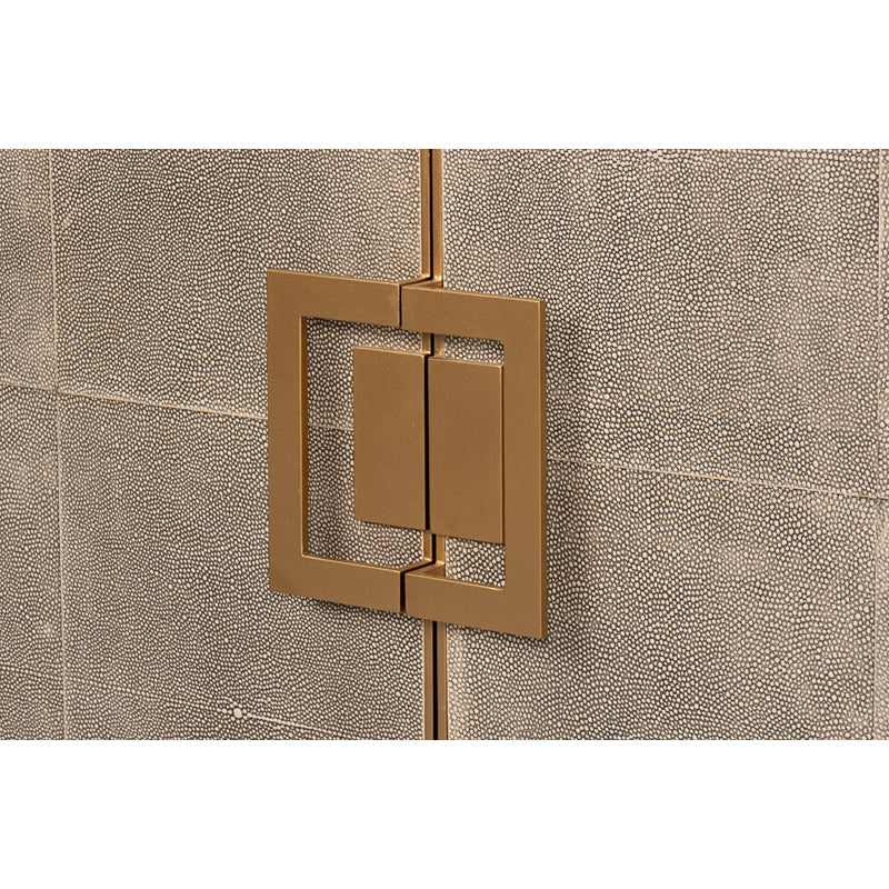 Bold and proud, Beto has four doors wrapped in luxurious shagreen leather. Brass pulls add visual interest and tactile appeal.