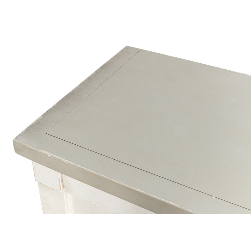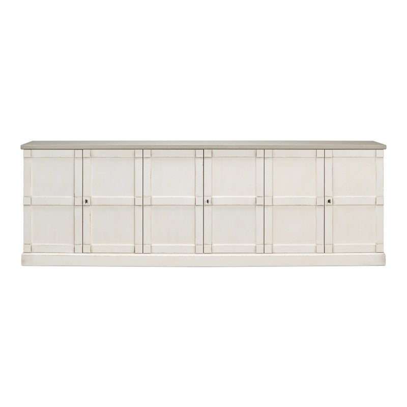 One of the most prized features of the Rhapsody buffets is the 15" depth making them practical as well as appealing. This one presents a white-on- white base and a grey quartz top.