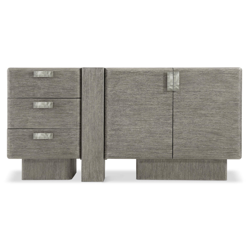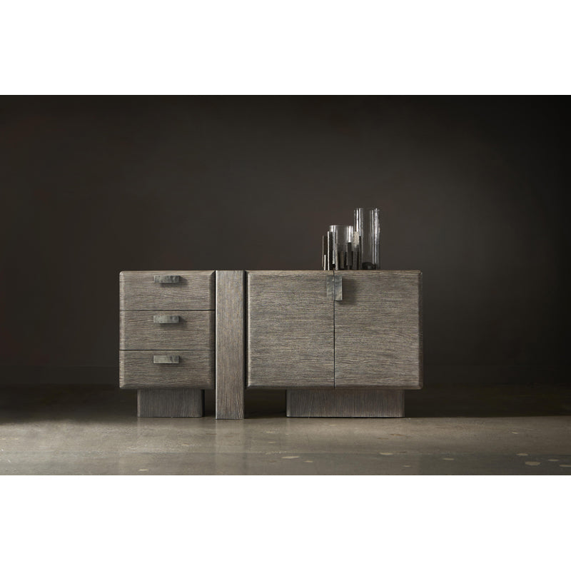 An offset vertical post adds visual interest to this buffet's bold design.