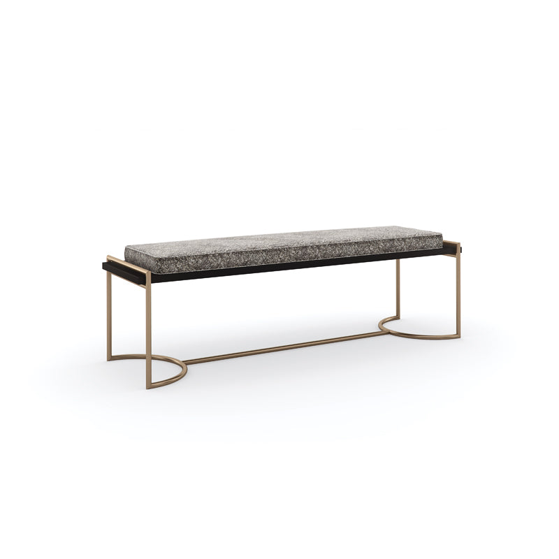 Simply sophisticated, this contemporary take on the end-of-bed bench introduces a European-inspired design to bedroom suites and dressing areas. Minimal embellishment and clean lines emphasize its refined use of materials: a textural velvet-covered seat, trimmed in Dark Chocolate and suspended between brackets at the top of a Champagne Gold base. Its versatile design also makes a chic addition to halls and entryways.