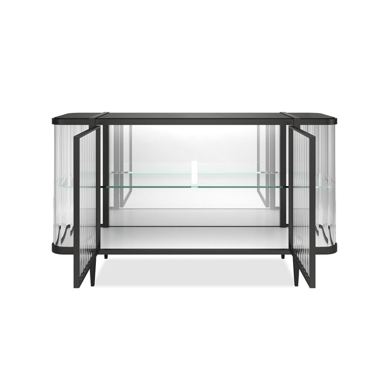 It’s true, this console is so extraordinary, you can’t help but Stop And Stare. It’s an instant source of brightness and reflectivity that creates a natural focal point. A wavy acrylic exterior mirrors the undulating patterns of sand and sea while its top adds another layer of organic splendor. The mirrored interior back and bottom panels are designed to reflect light as it pours in from every angle as well as mirror the beauty of the treasures you display. Glass shelves ensure unobstructed views as do its touch-latch doors with concealed hinges. A Brushed Deep Bronze outlines its rounded silhouette and four tapered feet, imparting the overall luxe feeling of a diamond in a platinum setting.