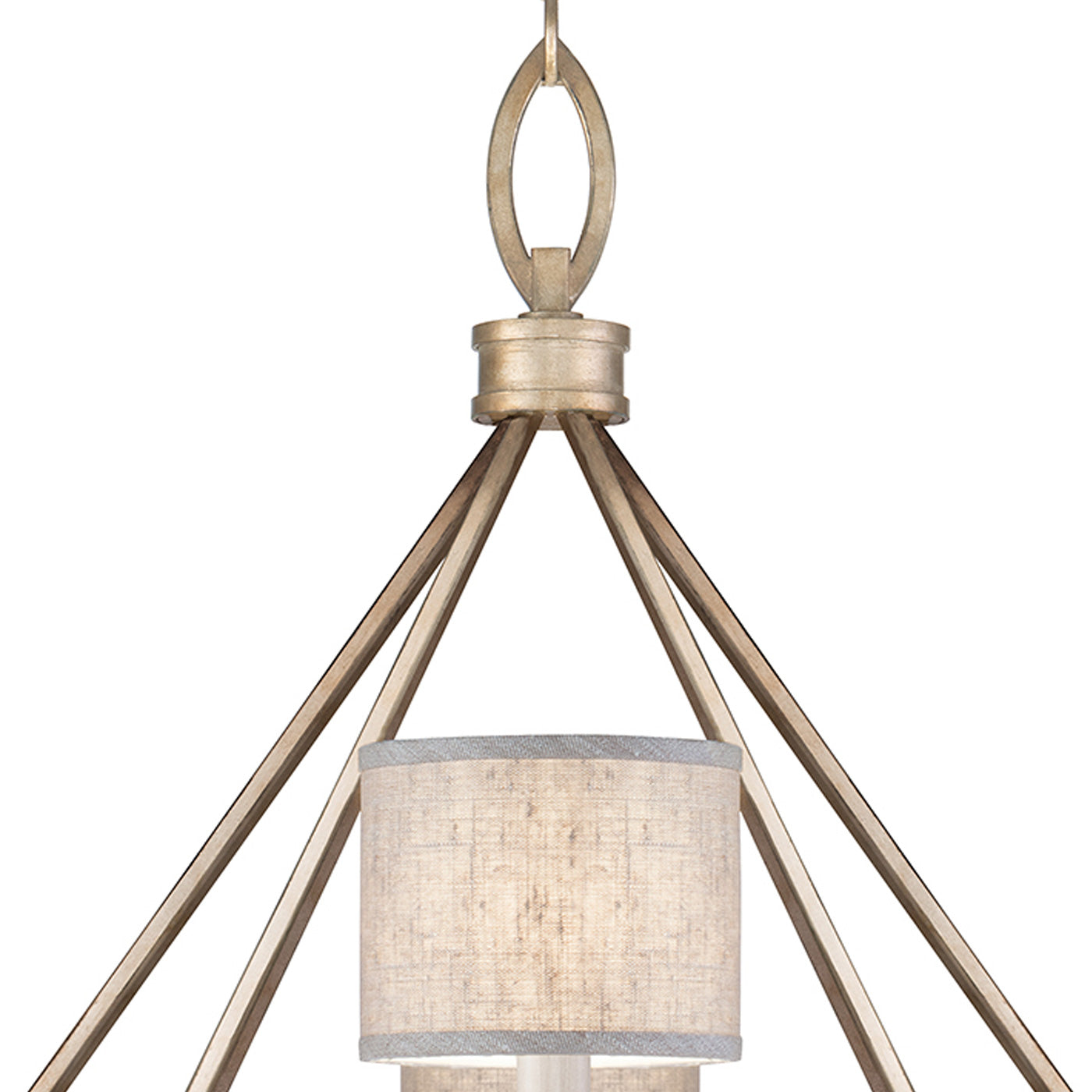 Executed by skilled metal artisans, this gold leaf chandelier with white laminated shades is inspired by the 1920’s unique transitional period in architecture & design in Cienfuegos.