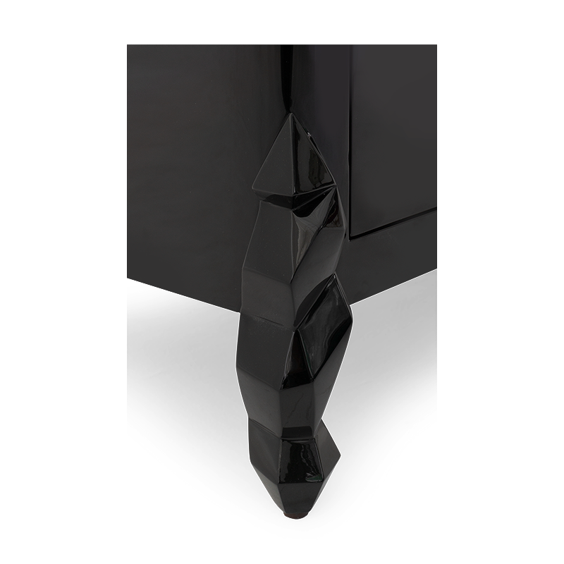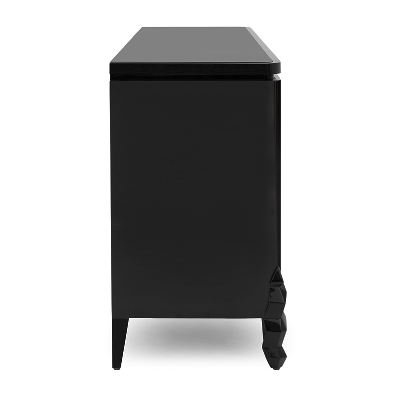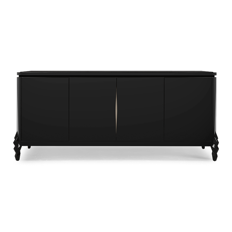 Imposing and elegant cabinet featuring Daliesque legs beautifully balanced by the signature Silk-cut feature, expertly hand-carved into the sides of the doors.