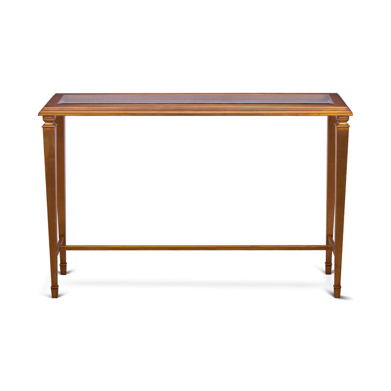 Antique Gold Leaf console table with tempered beveled glass top.