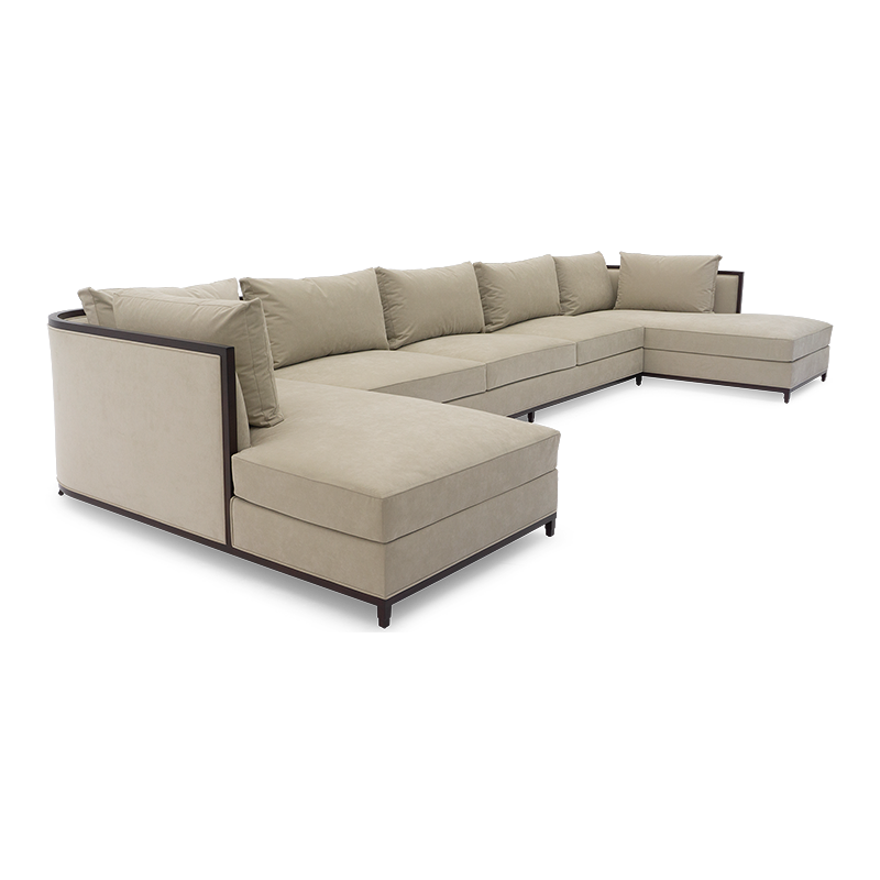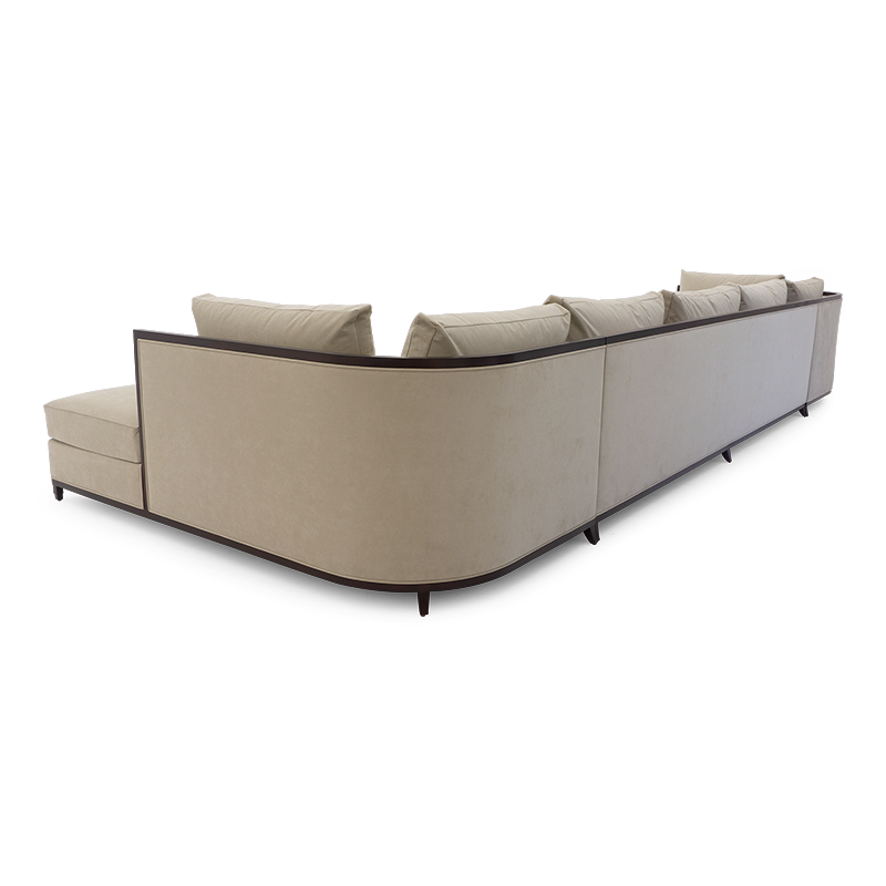 This elegant and practical sectional sofa is the perfect piece for positioning in a corner or as a centerpiece, with its curved back extending into a chaise on the right hand side. Also available in a right hand version 60-0508 and in right and left hand shorter versions, 60-0506 and 60-0507.