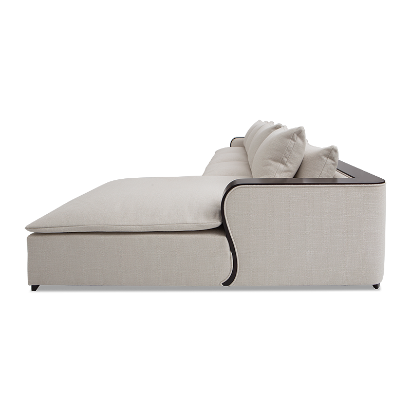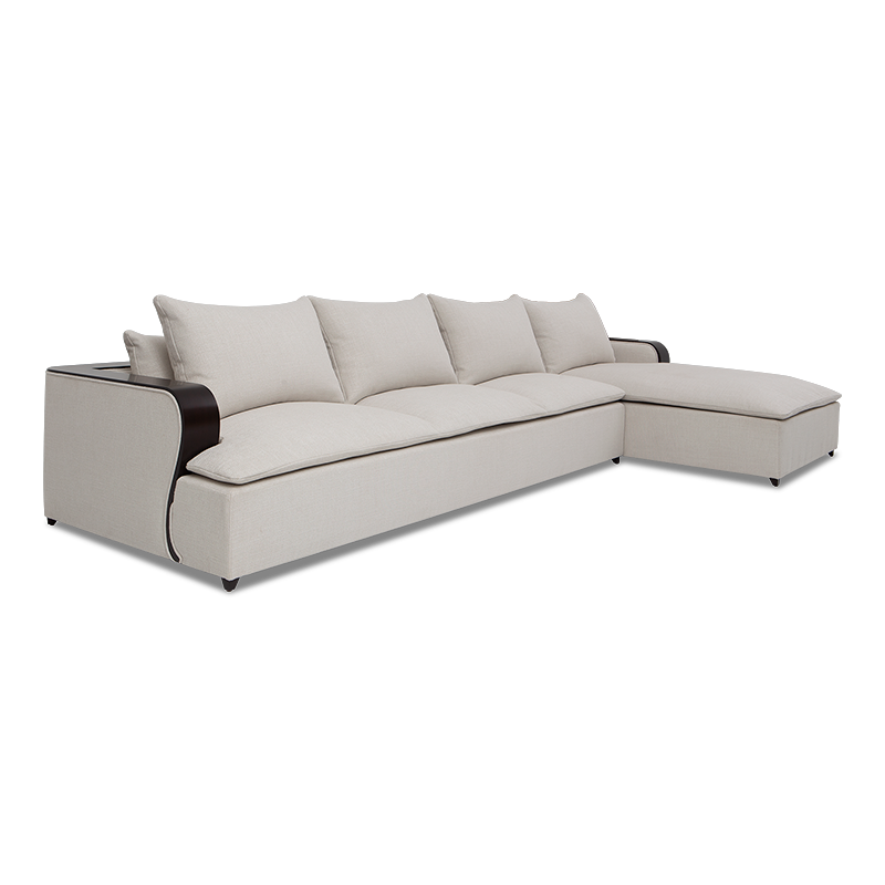 Named after the great shipping line, whose heyday was in the Art Deco era, this majestic L-shaped sofa with a 2-seater sofa and incorporated left-facing chaise with long arm is part of a full range of sectional sofas and chairs, all of which would add grandeur to any home. With the classic Deco curved arm rests and back framed in hand carved wood and a sumptuously deep seat, this is a piece created for supreme comfort and style.