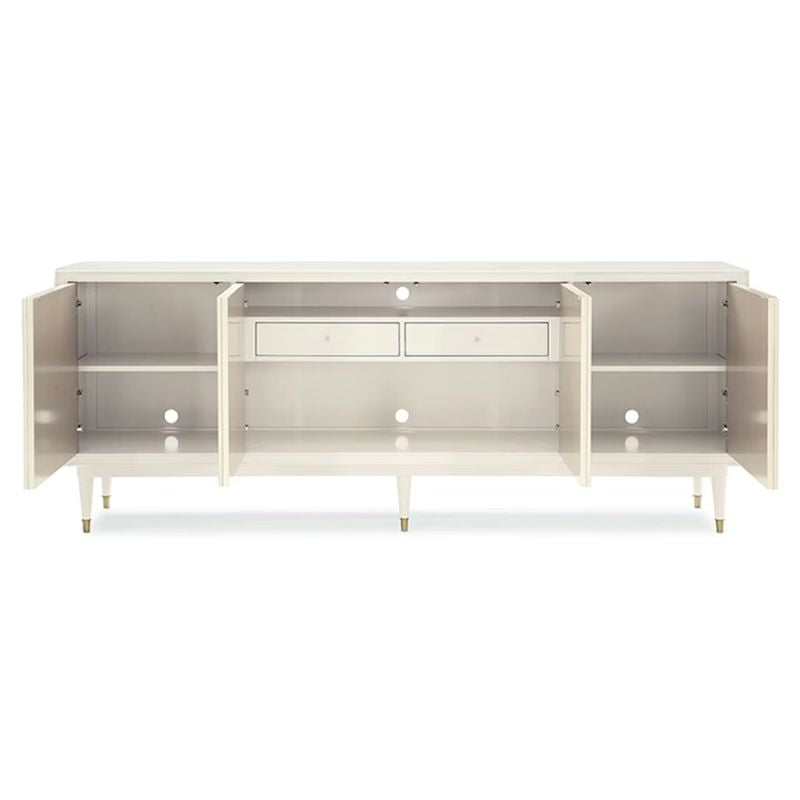 Behind center doors is an adjustable shelf, two drawers with side guides.