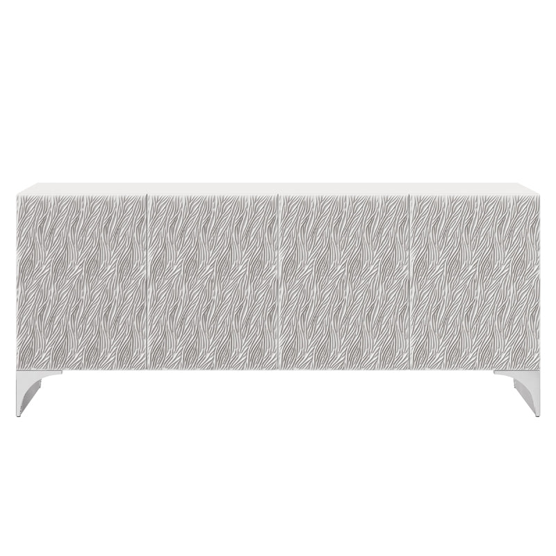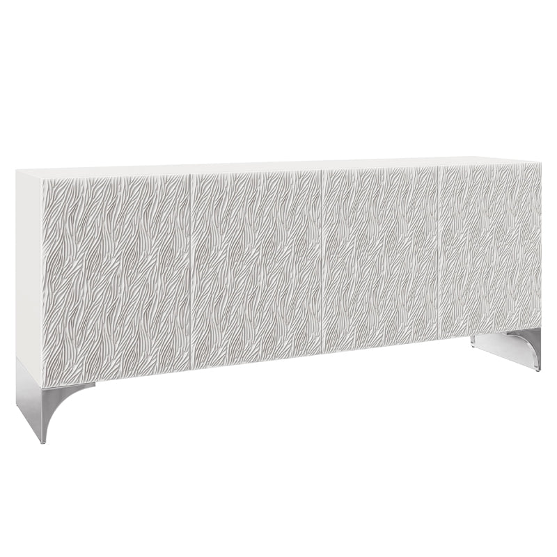 Sculpted door fronts showcase movement and style on this modern entertainment credenza.