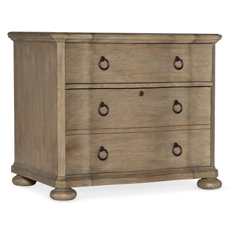 With a casual attitude and a sun-washed ambience inspired by the Mediterranean island for which it is named, the Corsica Lateral File is crafted of Acacia Veneers with a wire-brushed, artisan light natural finish with reclaimed character. Stylish details include decorator bun feet, burnished bronze ring-pull hardware and a vintage keyhole escutcheon. Featuring two drawers including a top drawer with full-extension metal ball-bearing slides and a bottom locking-file drawer with full-extension ball-bearing slides.