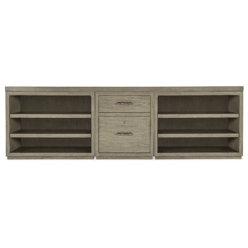 Capturing the essence of nature’s organic color palette on a clean-lined, simple silhouette, the Linville Falls Credenza fuels inspiration with streamlined organization. Crafted of Oak Veneers with a soft smoked gray Mink finish, the expansive 96-inch wide top has a functional base including a small file in the center and an open desk cabinet on each end. The credenza has 2 drawers, with a top utility drawer and a lower locking file drawer with pendaflex filing system. The roomy desk cabinets each have 2 adjustable shelves. The credenza is fully finished on the back so it can be floated in a room.