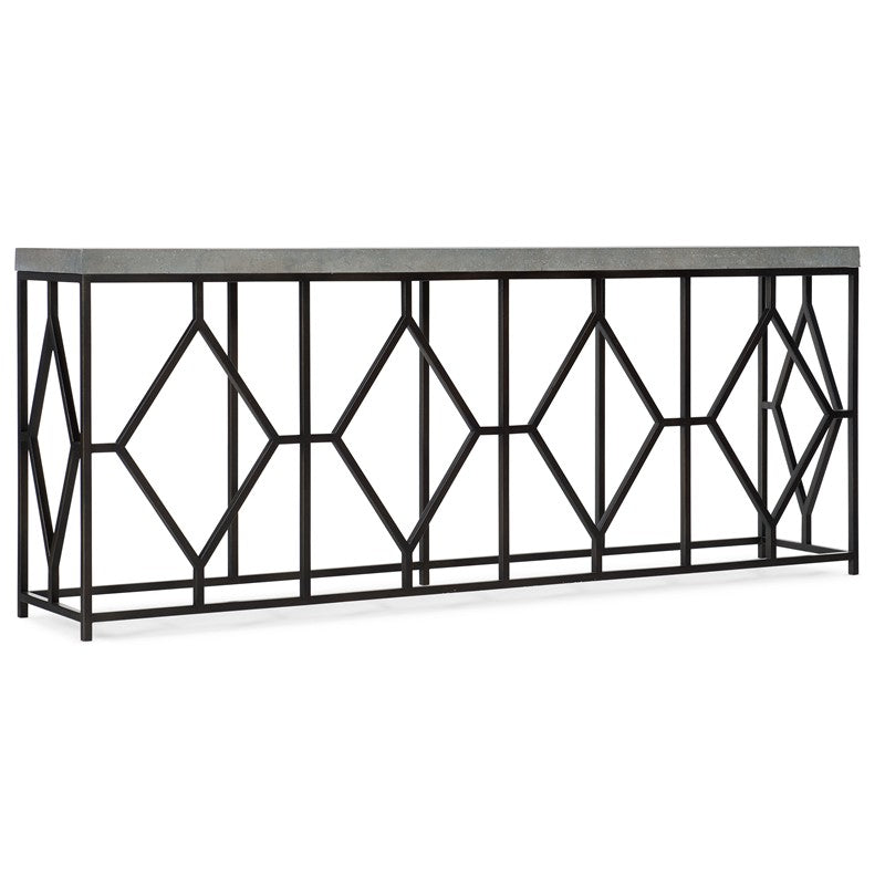 Create a stylish focal point in any room with the intricate metal base with diamond motifs, topped by a chic concrete surface that makes this piece perfect for interiors from the farmhouse to the penthouse. The base is in an Aged Steel finish and the faux concrete top is a soft gray white.