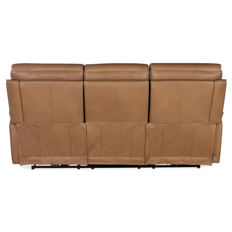 Finally, there’s a casual contemporary sofa that’s stylish and tasteful. Featuring a bustle back and saddle-padded arms, the Lyra Zero Gravity Power Sofa with power headrest is generously scaled with clean lines and top-stitch detailing. Lyra also offers adjustable lumbar support, a USB port and pop-out arm panel with a metal cupholder, and is covered in the Sahara Sandalwood semi-aniline top-grain leather.