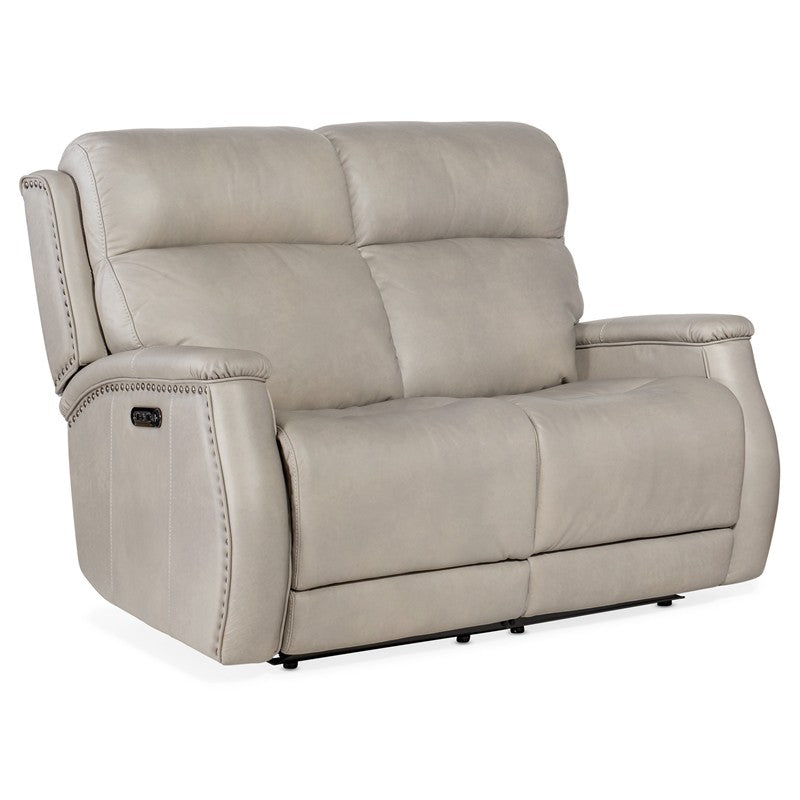 Offered in the scrumptiously soft, Sahara Ash semi-aniline top grain leather, the Rhea Loveseat offers power headrest and zero-gravity power recline to make you feel like you’re suspended in ultimate comfort. With a bustle-style back, the loveseat is accented by nailhead trim and features a USB port.