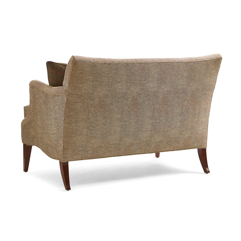 Photographed in Lindstrom Cognac with Malacca finish. Standard with (2) 18x18 pillows as shown. Pillows photographed in Scots Tobacco with Swift Chocolate cord.