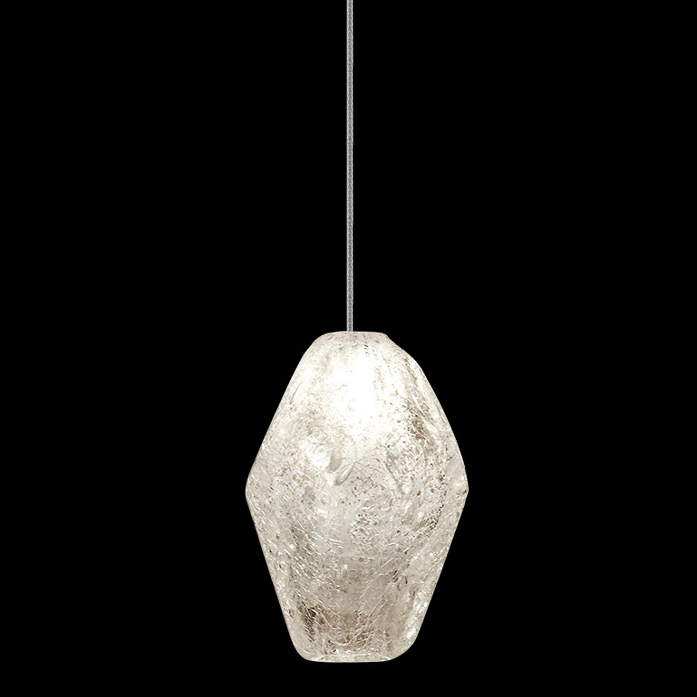 Master glass artisans blend quartz with other minerals to create Clear Quartz glass drop pendant with gold-toned silver leaf canopy. Also available in platinized silver leaf with choice of additional crystal glass options. For 220V, item is configured with halogen G4 bulb(s).