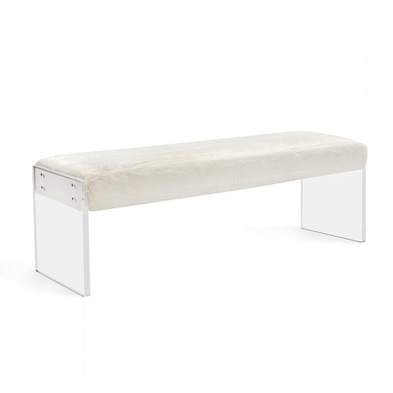 The texture of plush ivory faux fur plays off sleek, clear acrylic to make the Riley Bench a chic but totally versatile seating option that enhances any space.