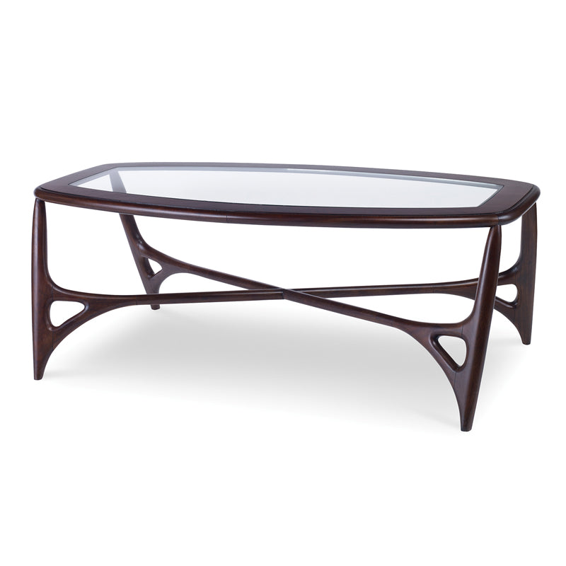 Medium Walnut Finished Walt Cocktail Table with Glass Top