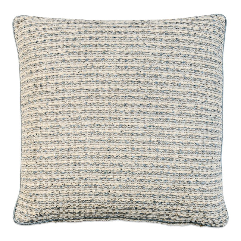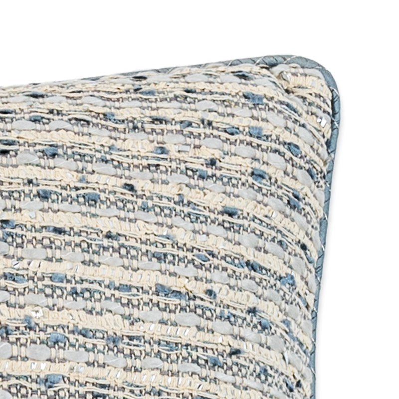 Embrace luxury with the Bluebell Throw Pillow. The knife edge design and Francesca Bluebell fabric create a sophisticated and exclusive look. The Kyoto Silver contrast welt, cut on a bias, adds an element of elegance. Measuring 22x22 inches, this pillow is a must-have for any stylish home.