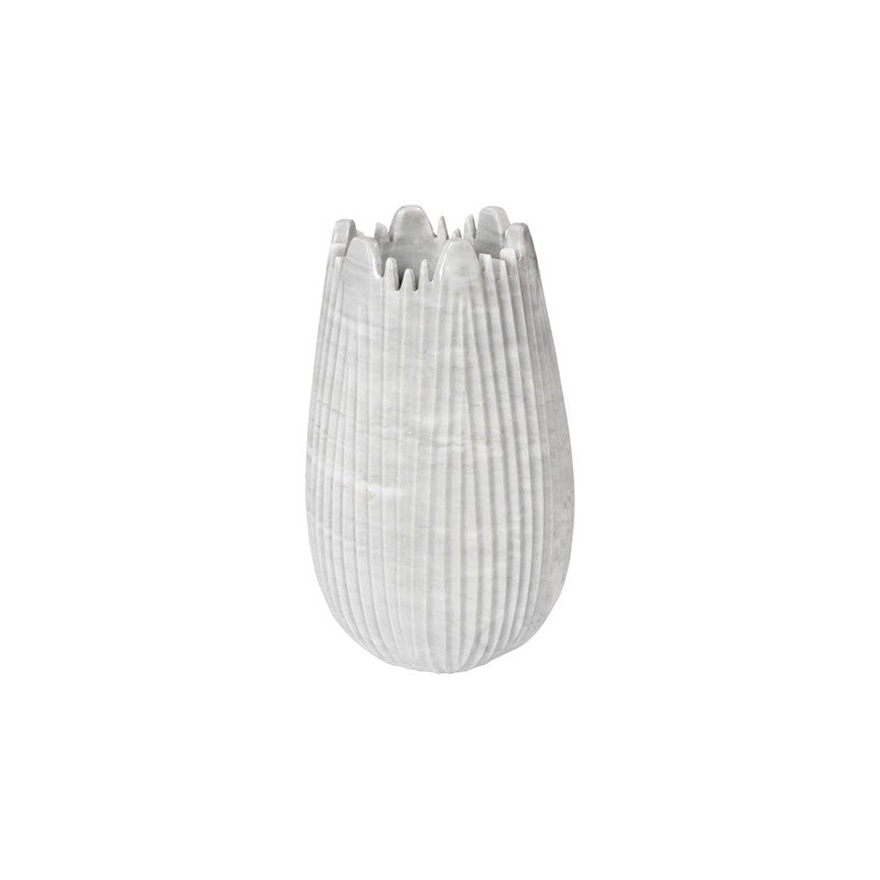 The Marble Cocoon Vase is a perfect harmony of natural beauty and craftsmanship. Expertly carved from genuine marble, this vase features a cocoon-inspired silhouette, complete with elegantly ridged textures that bring depth and intrigue to its organic form. Offered in two sizes and two sophisticated finishes, it makes a versatile décor piece.