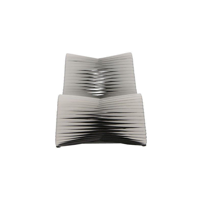 The Seat Belt Gray Black Rocking Chair is one of many offerings in this contemporary seating collection by award-winning Thai designer Nuttapong Charoenkitivarakorn. The design was inspired by the intertwining spools of fabric seen when visiting a seat belt factory. Nuttapong’s striking chairs are easily recognizable by the braided backside and stiletto profile. The straps are woven on a frame made of wood that is reinforced with metal. There are monochromatic and two-toned versions, each of which are available in many colors. We offer custom color matching for quantities of 16 or more. All of these reflect the ethos that the Phillips Collection personifies: modern organic.