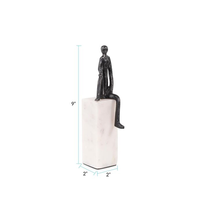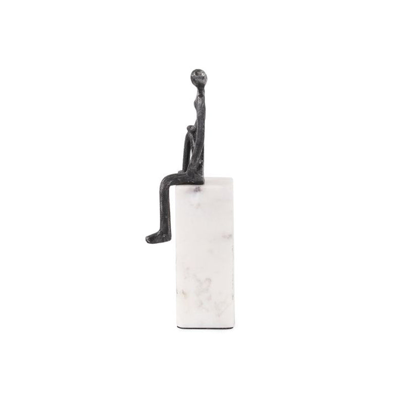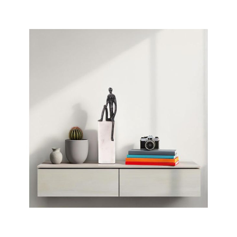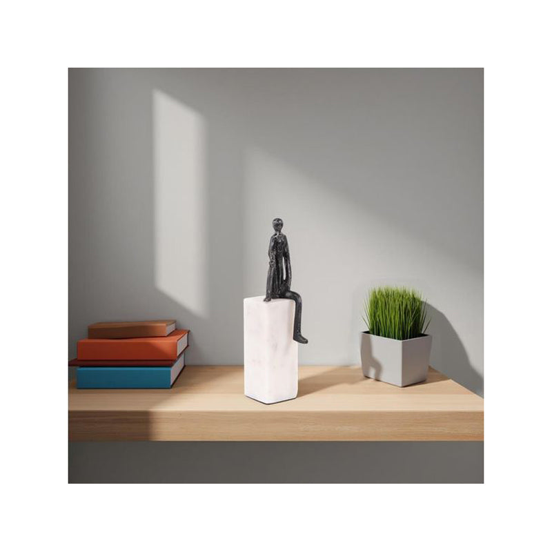 This sculpture features an Iron Man in a captivating pose, with one knee raised and a pose that exudes a sense of power and contemplation. The juxtaposition of the robust iron figure against the pristine white marble base adds a touch of contrast and elegance to the composition. This sculpture serves as a symbol of determination and resilience, capturing the essence of human potential and the enduring spirit of achievement. Sculpture