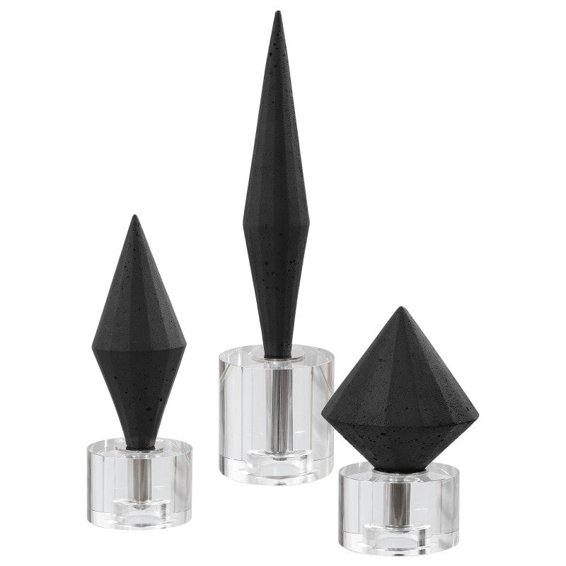 Elegant Black Diamonds Crafted From Black Man-made Stone Atop Crystal Bases. Sizes: S-5x7x5, M-4x10x4, L-4x14x4
