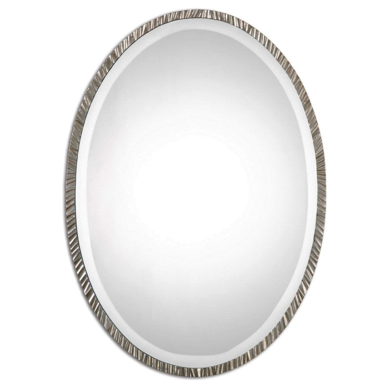 Textured Metal Frame Finished In A Lightly Antiqued Metallic Silver. Mirror Has A Generous 1 1/4" Bevel And May Be Hung Horizontal Or Vertical.