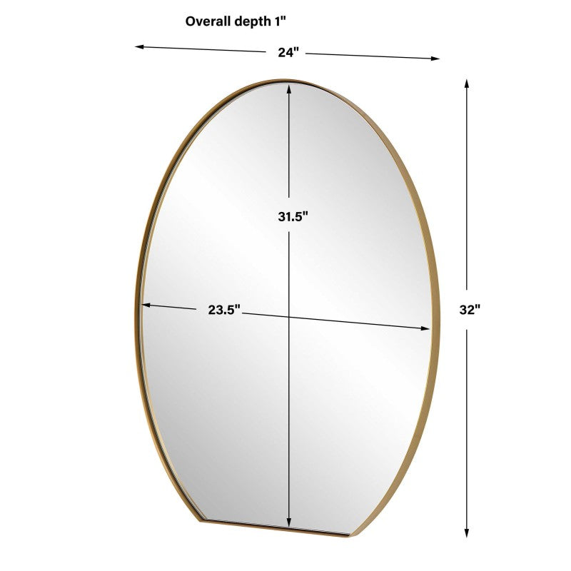 This Sleek Oval Mirror Features A Plated Brushed Brass Finish Over A Stainless Steel Frame That Surrounds A Floating Polished Edge Mirror.