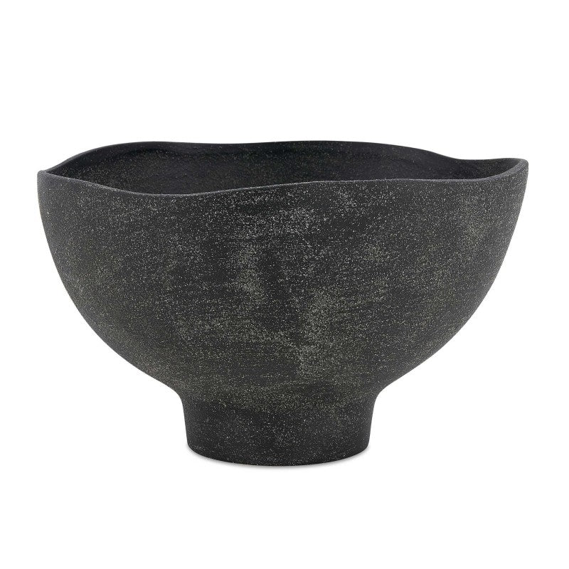 Crafted From Earthenware, This Bowl Has A Unique, Organic Shape With A Subtly Waved Rim. Its Matte Black Finish Features A Rich, Rustic Texture, Giving It A Sophisticated, Artisanal Feel That Adds Natural Character To Any Space. Safe For Outdoor Use, But Protection From Freezing Temperatures Is Recommended.