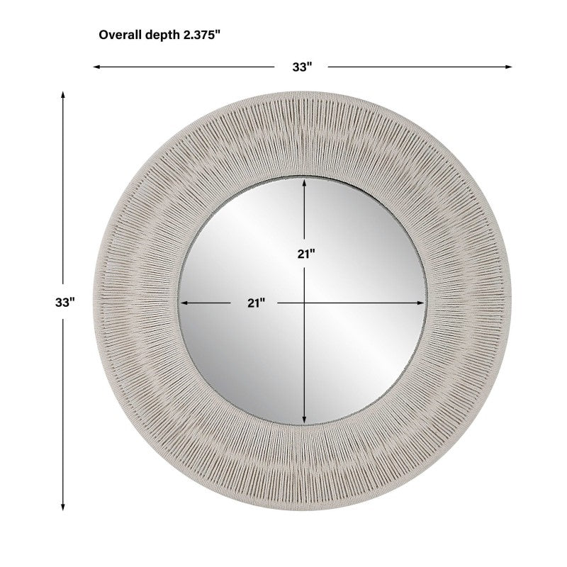 With Combined Natural Texture And Materials, This Round Mirror Pays Homage To Its Coastal Inspiration. Crisp White Rope Is Stretched Over A Solid Iron Frame To Create A Casual And Versatile Design.
