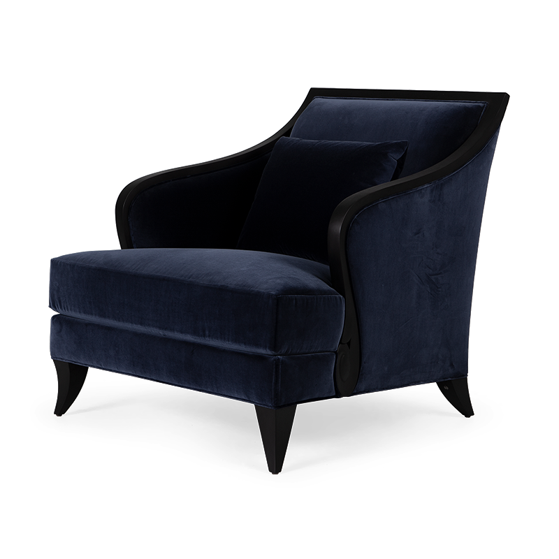 With an upholstered square-backed profile and elegant curved arm-rests, this deep-set lounge chair is a sophisticated addition to any scheme.