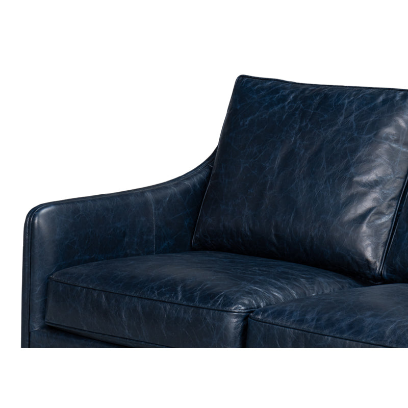 Meet Alehandro, a contemporary masterpiece upholstered in luxurious Chateau Blue leather. The sleek design makes this a stylish centerpiece for your contemporary living space.