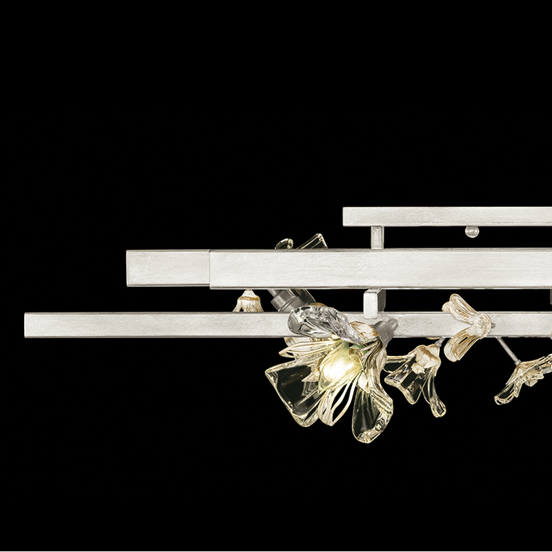 This collection is inspired by the craftsmanship of fine jewelry, runway fashion trends, and the beauty of nature itself. Its name is short for Azucena, a "Madonna Lily" in Spanish. This silver leaf flush mount features a flirtatious interplay of crystal with white and gold brushed metal floral adornments creates a romantic atmosphere emanating feelings of joy and the celebration of life.