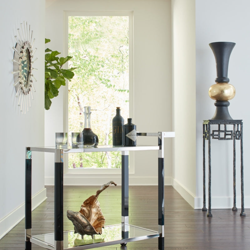 Black and gold oversized floor vase.