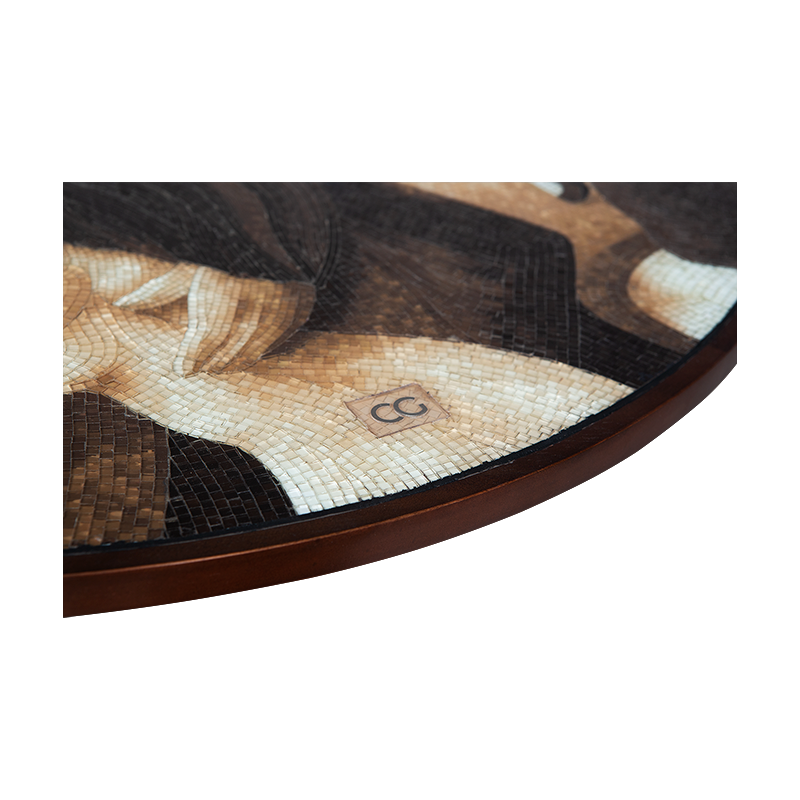 Mosaic inlay of the highest quality, comprising of thousands of hand-cut and individually colored glass pieces.