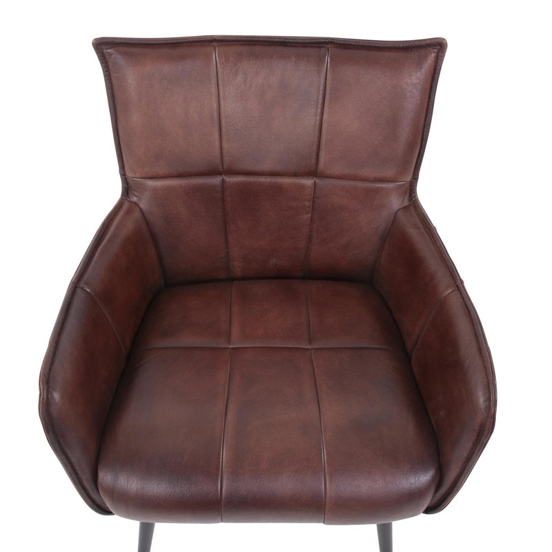 This hand crafted leather chair finished in a rich cognac color, adds a sophisticated touch to any seating area. From the stitching of the upholstery to the iron base with its leather detail, The Lucca Chair showcases old world craftsmanship and artistry. Chair