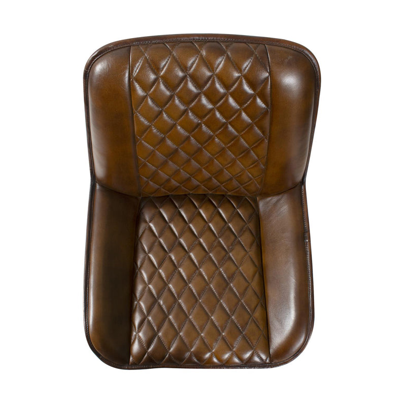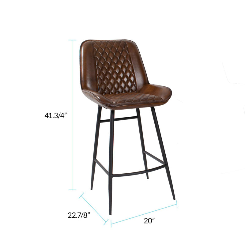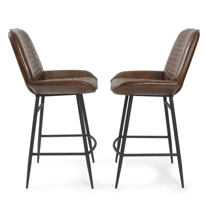 Featuring a deep brown leather seat adorned with a diamond-patterned stitching for a sophisticated look. These bar chairs are supported by sleek matte black legs, blending modernity with timeless style. Chair