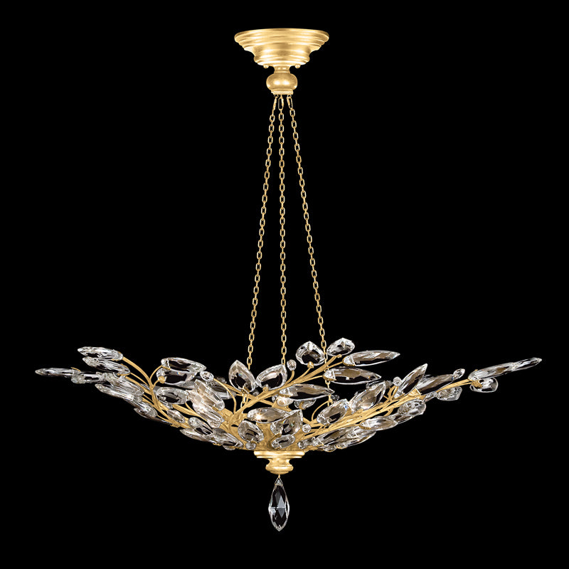 Pendant in a gold leaf finish featuring stylized faceted crystal leaves.