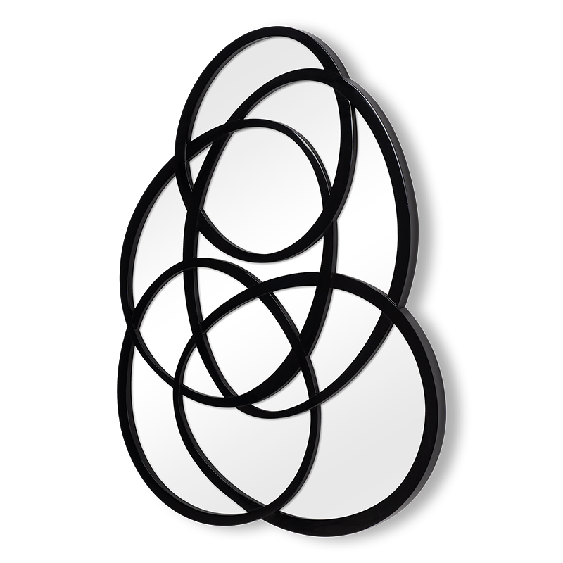 A single carved line forms five superimposed egg shapes, with each overlap creating fascinating forms within the ovals. A mesmerizing mirror frame to complement a contemporary interior. Also available in Art & Decor as wall art 46-0185.
