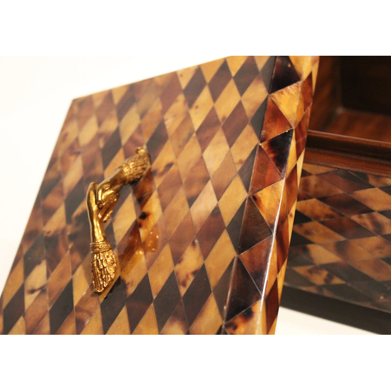 Light and Dark Harlequin Penshell Box with Finely Cast Brass Mounts