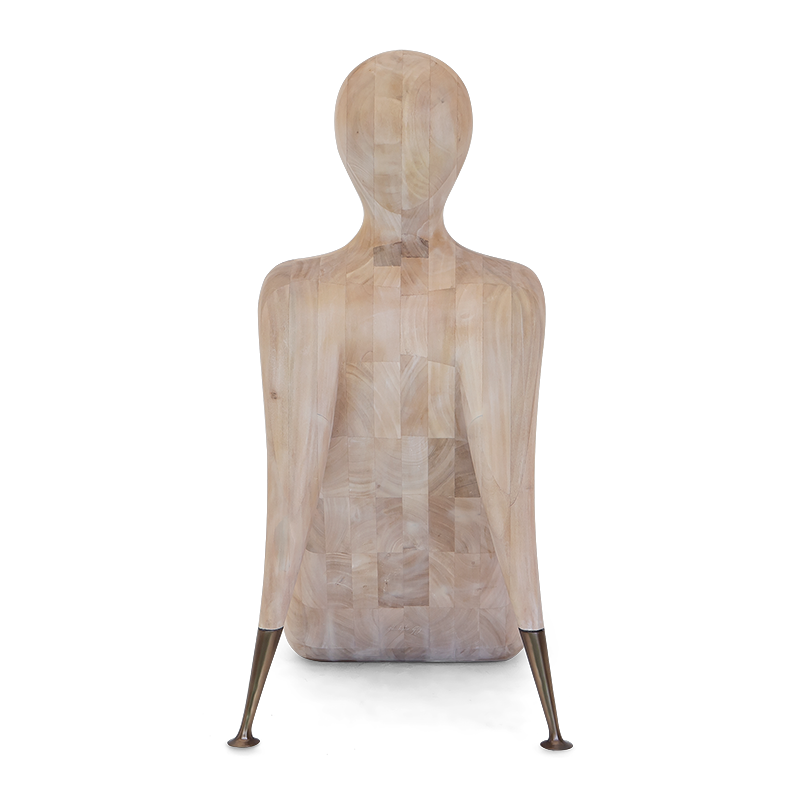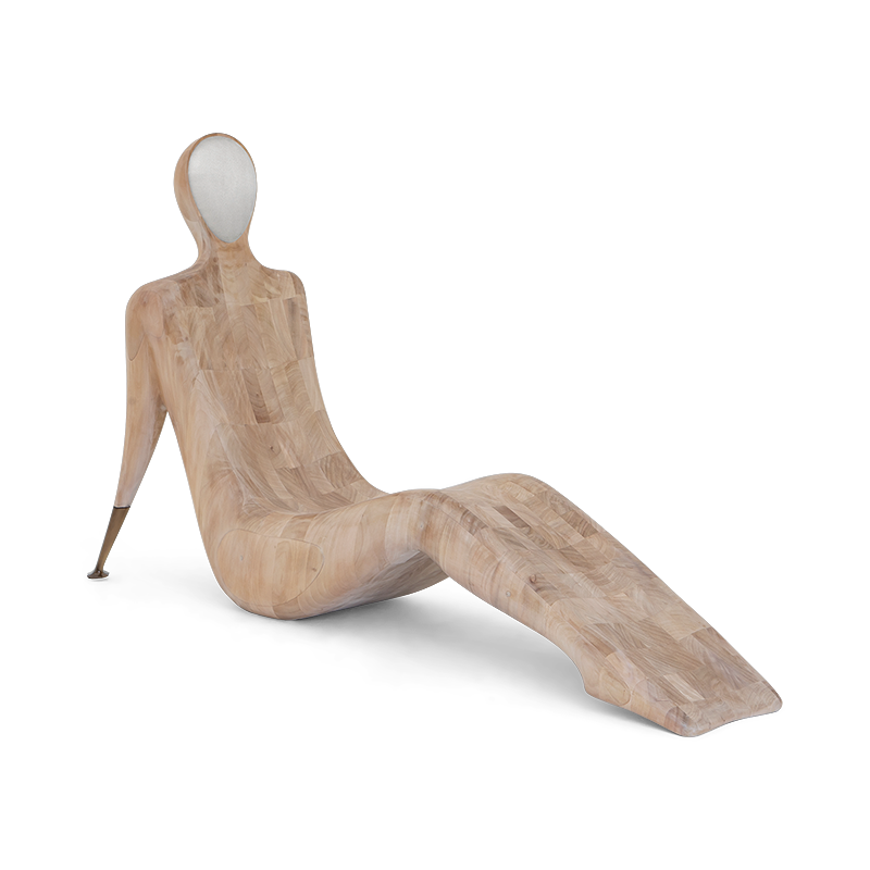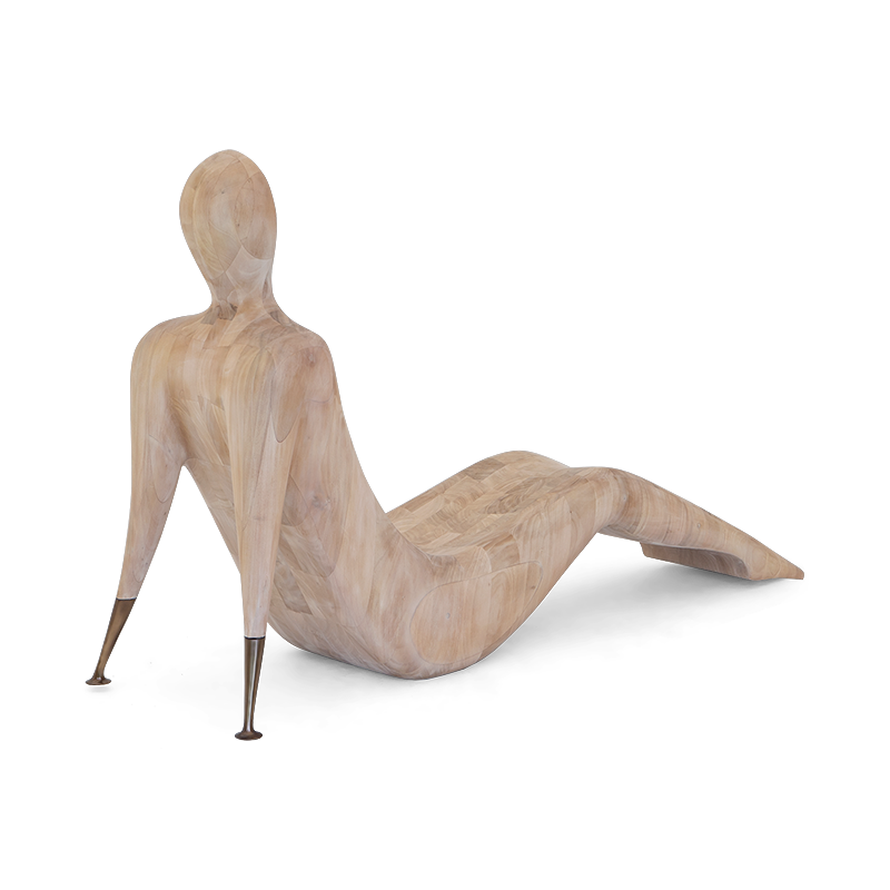 The ergonomically perfect hard-carved wooden chaise with brass arms, individually welded to form a seamlessly piece of unprecedented beauty and value.
