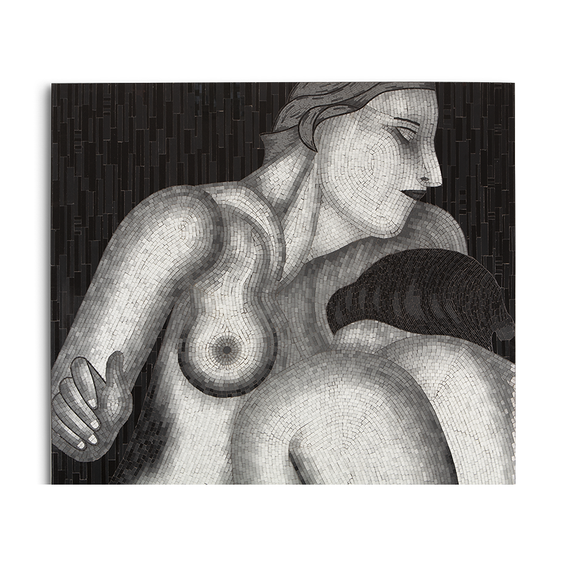 Dramatic contrasts characterize this extraordinary piece of wall art, handmade from thousand upon thousand of individual glass mosaics to reflect the contradictions of passion and detachment so perfectly embodied in Tamara de Lempicka's art.