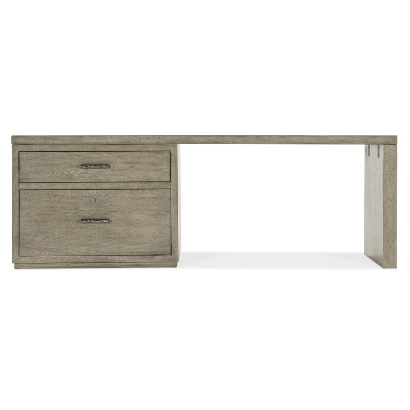 Capturing the essence of nature’s organic color palette on a clean-lined, simple silhouette, the Linville Falls Desk is crafted of Oak Veneers with a soft smoked gray Mink finish. The 84-inch wide top is flanked on one side by a leg end panel and on the other by a lateral file with a top utility drawer and a lower locking file drawer with pendaflex filing system. The desk is fully finished on the back so it can be floated in a room.
