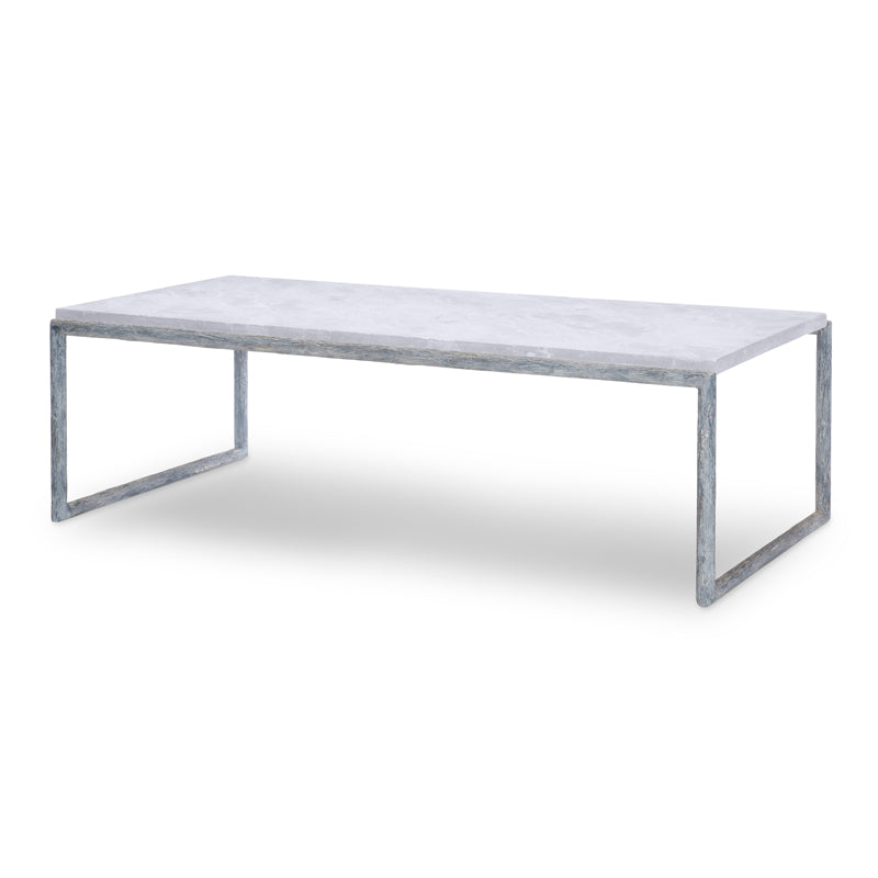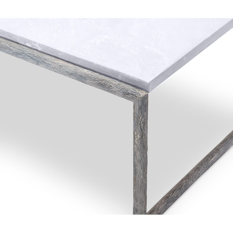 Textured antique white finish metal base with Arctic White scagliola top