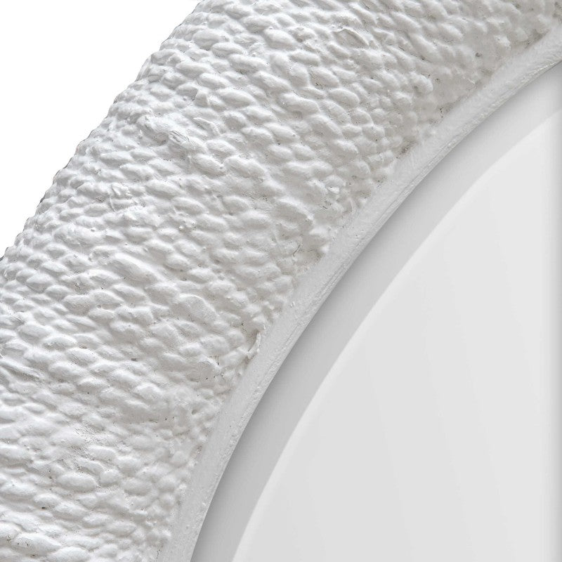 A Casual Yet Sophisticated Nod To Classic Coastal Style, This Mirror Features A Rounded Frame Made Of Natural Woven Banana Plant Accented With A Rattan Inner Edge, All Finished In Matte White. Mirror Has A Generous 1 1/2" Bevel.