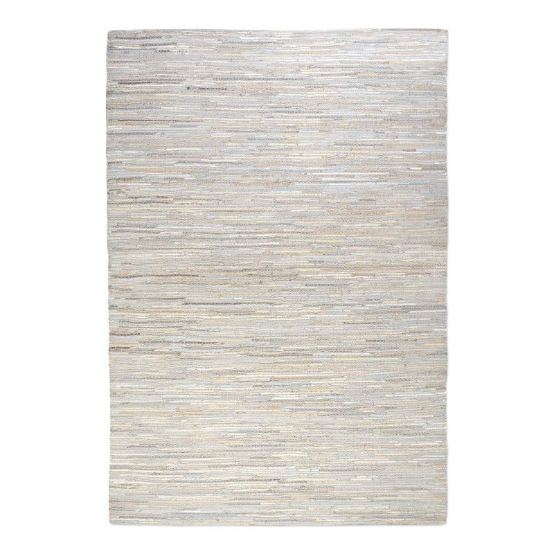 Hand Woven Hemp And Recycled Leather In Tones Of Light Beige, Cool Grays And Subtle Hints Of Blue.